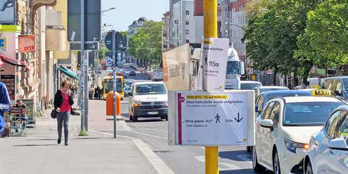 | Am S-Bahnhof Westend ist die M45-Bushaltestelle, die bisher direkt vor dem Bahnhofsausgang lag, ersatzlos aufgehoben worden, weil die umgeleiteten Autos zur Stadtautobahn den Haltestellenbereich zustauen. Die Fahrgäste werden auf die reguläre Haltestelle 115 Meter vorher verwiesen. Kollateralschaden Busfahrgäste für die nächsten 3 Jahre? Durch bauliche Abtrennung (Zwischenbord) der nach wie vor gültigen Busspur und eine veränderte Ampelschaltung an der Autobahnauffahrt ließe sich die Haltestelle wieder nutzen. Foto: Florian Müller 29.4.25) |